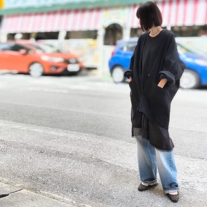 オールブラックなので、ちょっとモードで上品な仕上がりに。男女問わず着用していただけます。