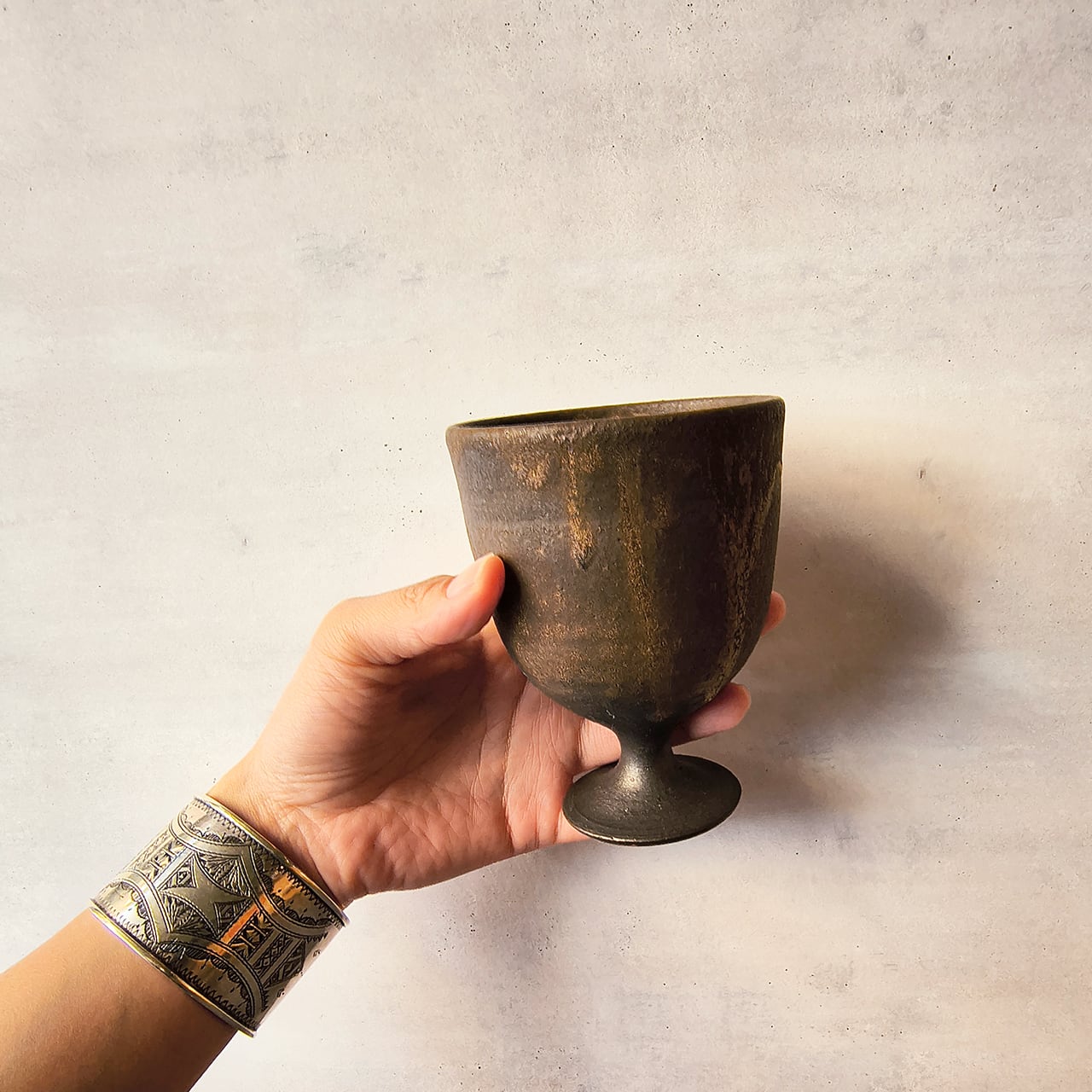 沖縄県の今帰仁の窯で作られた、やちむんのゴブレットです。