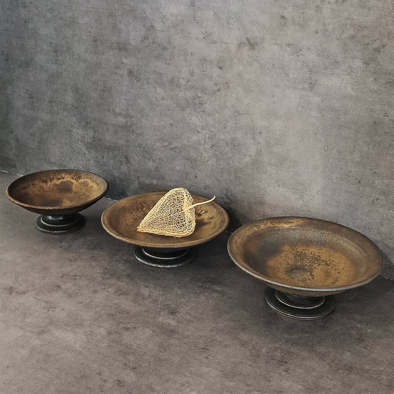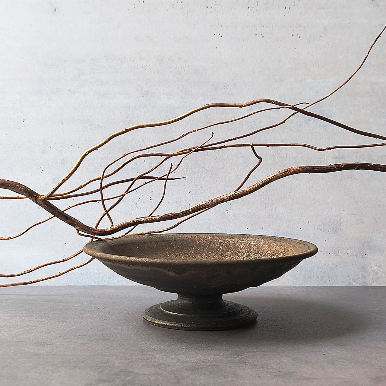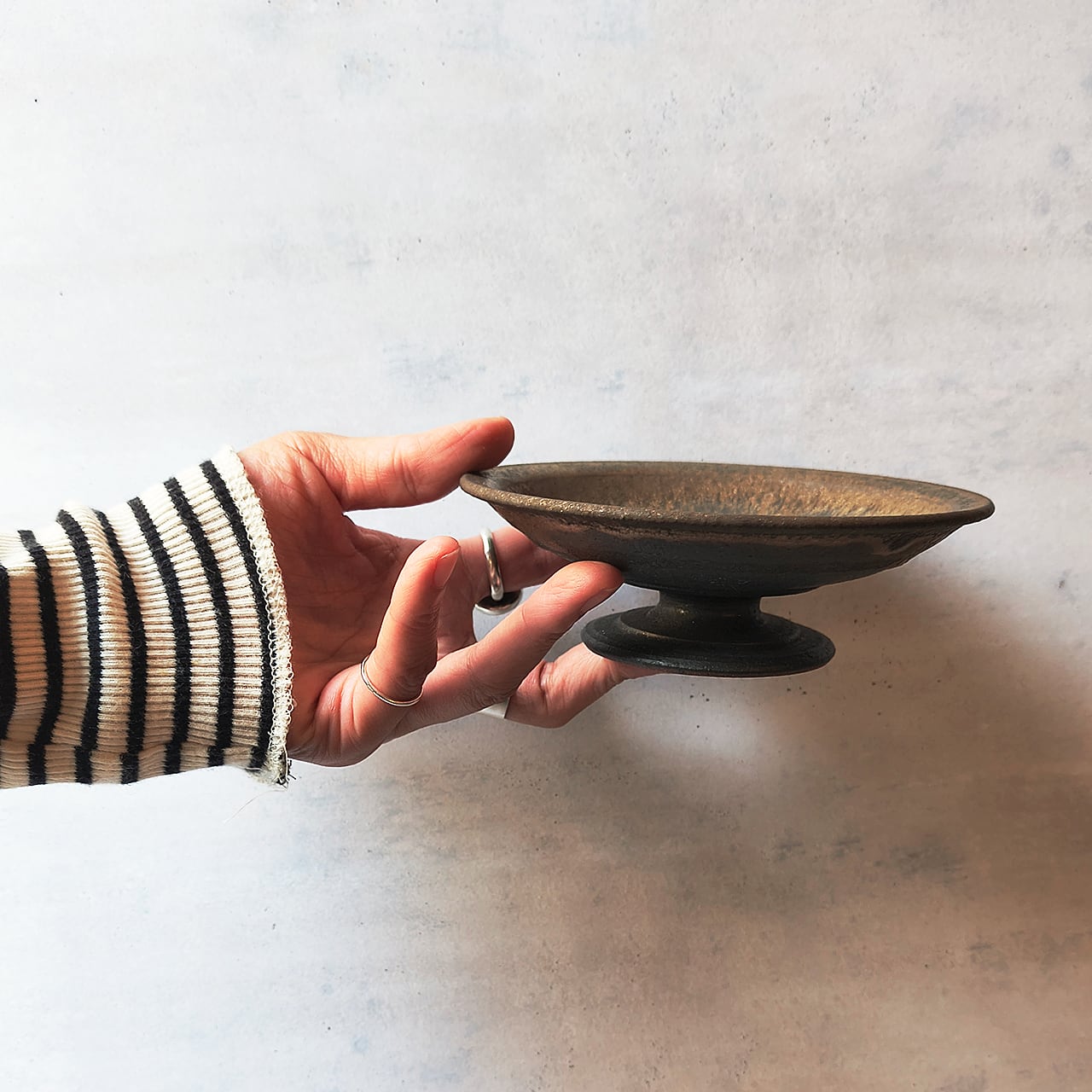 やちむん FUCLAY コンポート皿 脚付き皿 FUCLAY black コンポートディシュ 釉薬 沖縄県今帰仁の窯 やちむん 器 皿 沖縄 【f-com2511-2】