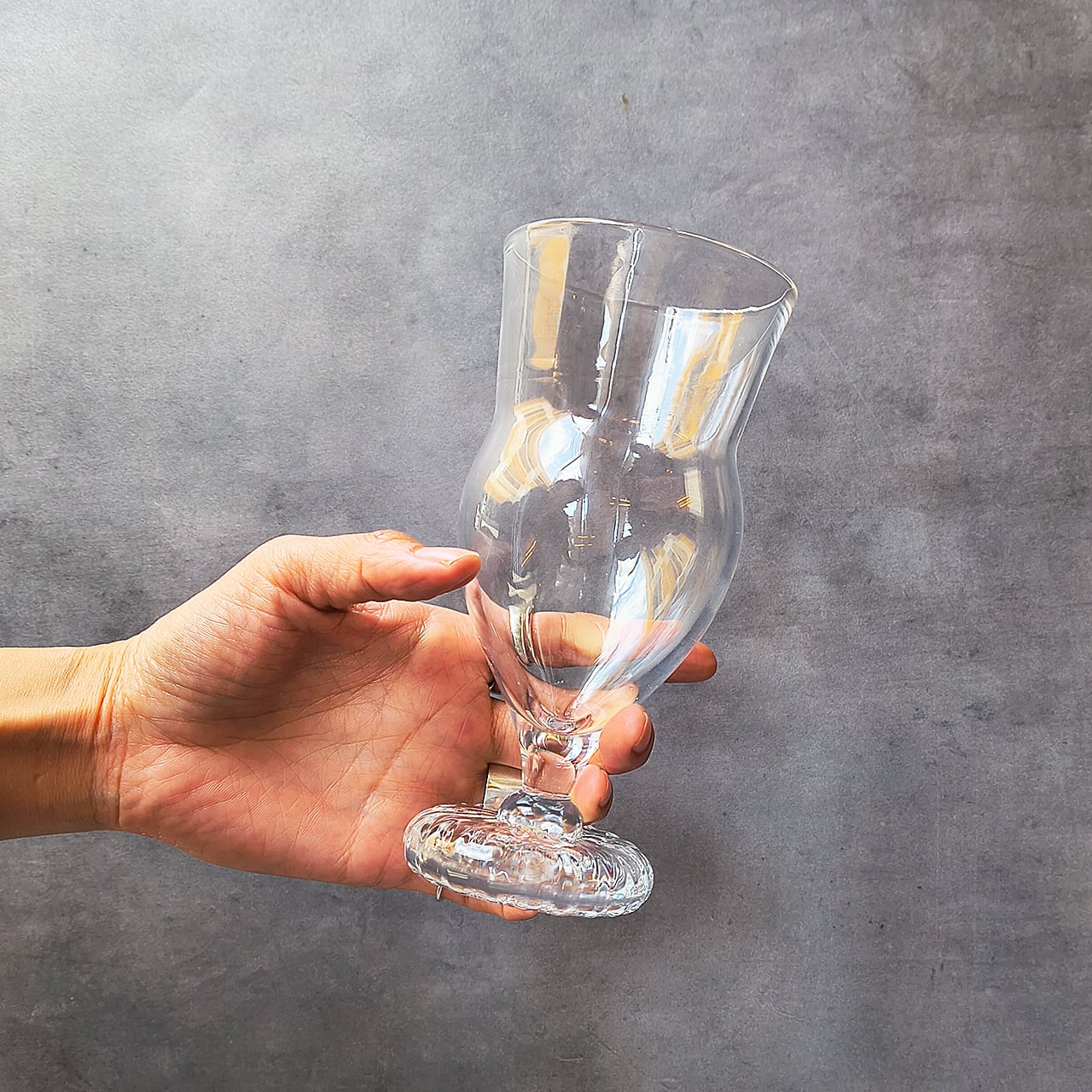 琉球ガラスではめずらしい、厚みが少なく、軽い手触りの大きめのゴブレットです。