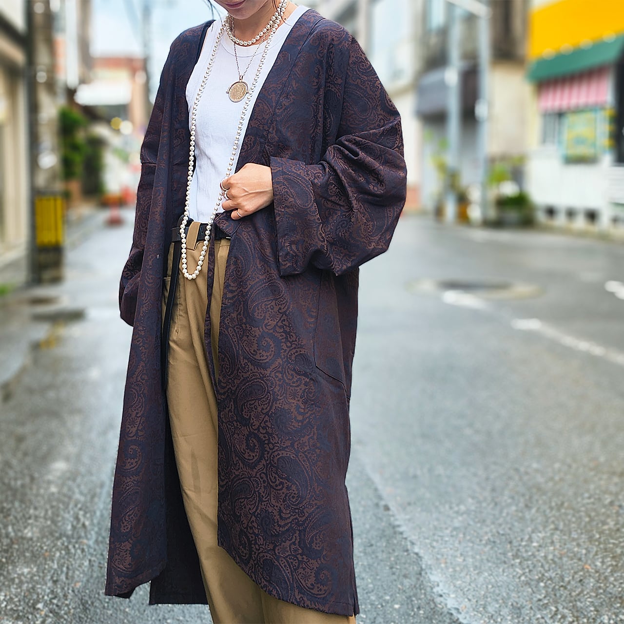 【 THE SAME A jacquardpaisley 】 ロング丈 作務衣 ジャガード ペイズリー ブラウン×ブラック ライトジャケット カーディガン アウター ストリート アメカジ メンズ ユニセックス アウトドア おしゃれ【fm-sameA-jacquardpaisley】
