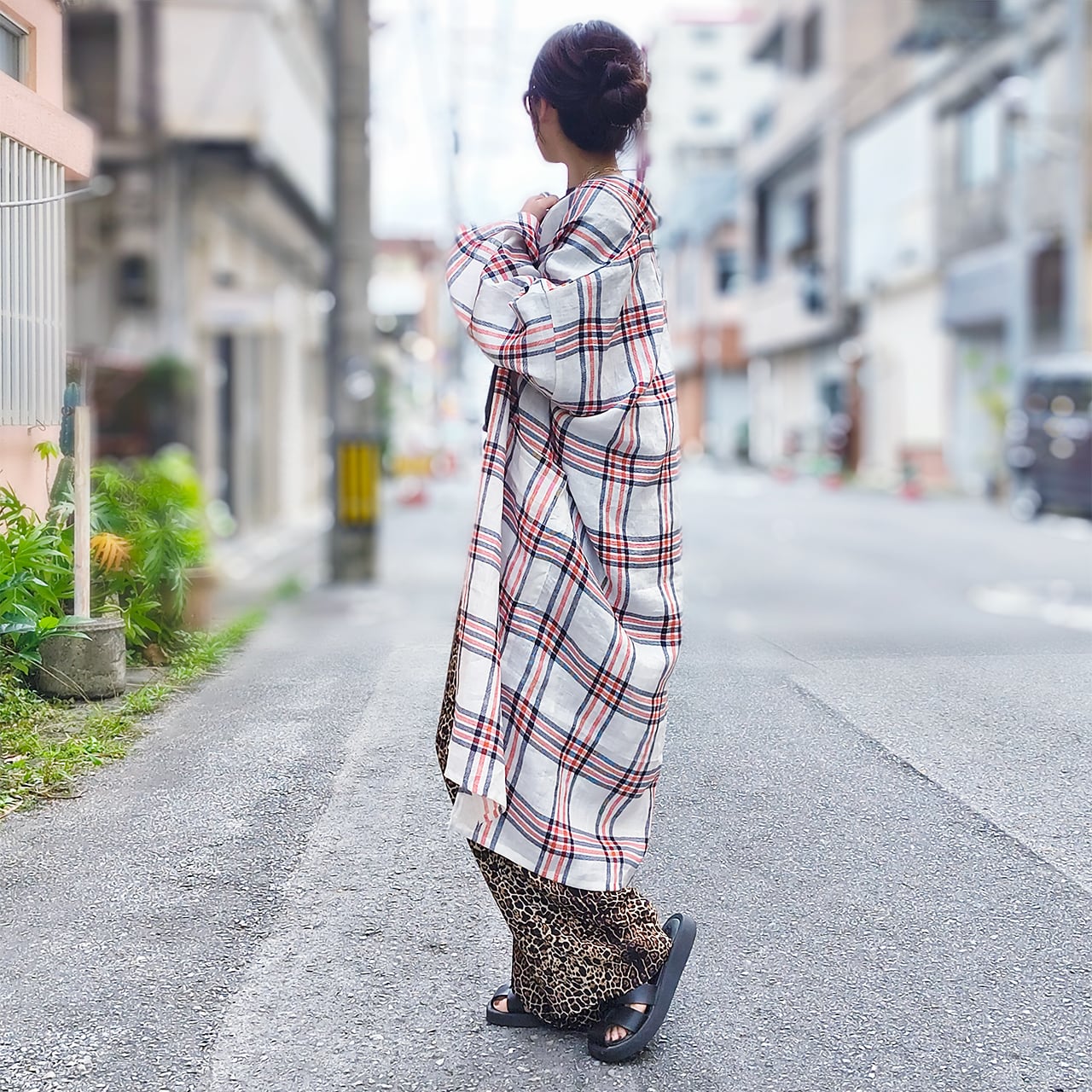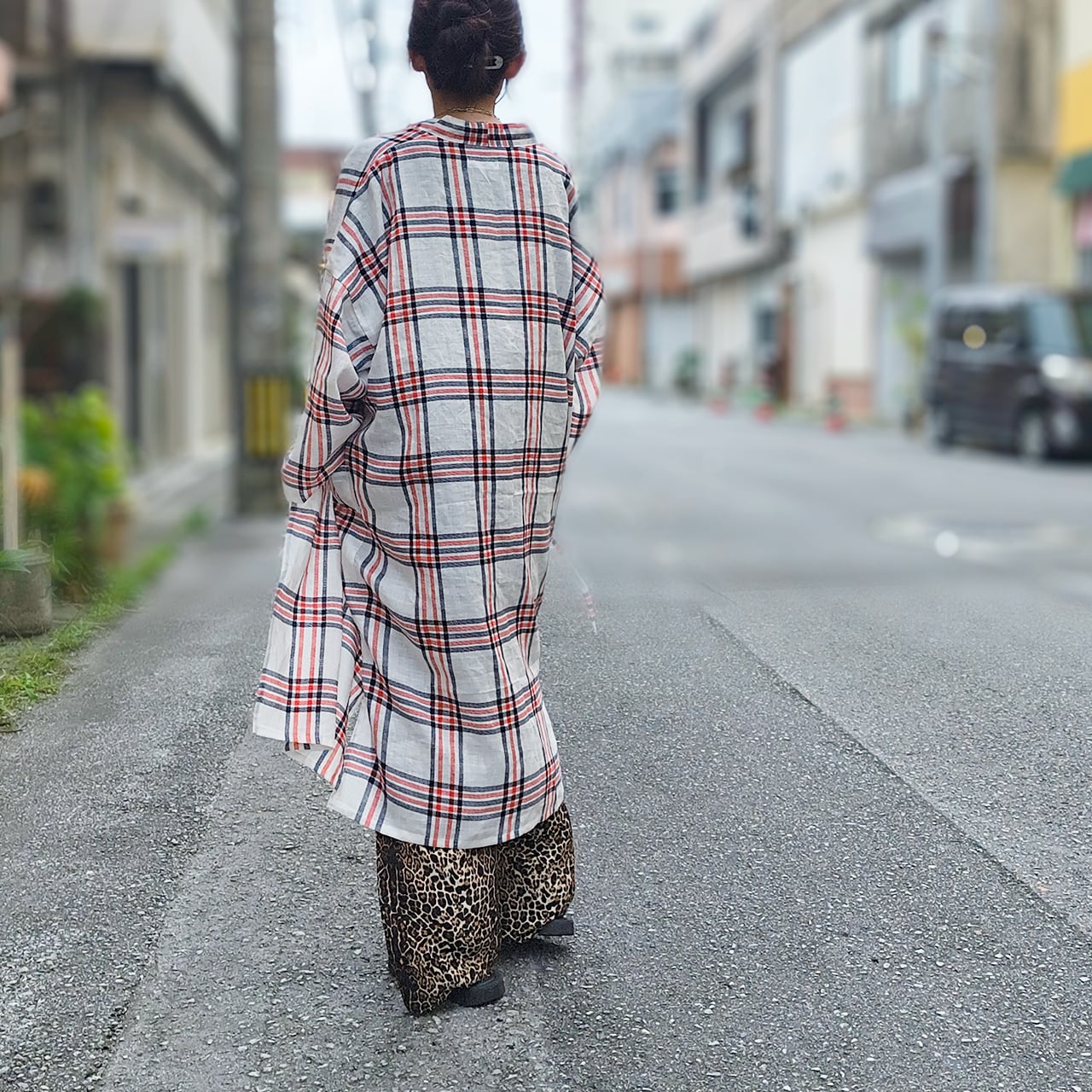 【 THE SAME A LINEN 】 ロング丈 作務衣 ガウン マリンチェック リネン 麻 ライトジャケット カーディガン アウター ストリート アメカジ メンズ ユニセックス アウトドア おしゃれ【fm-sameA-linen】