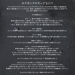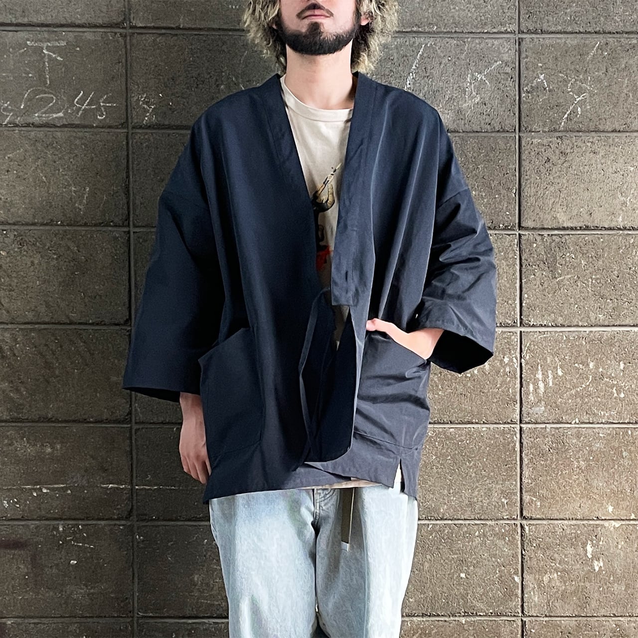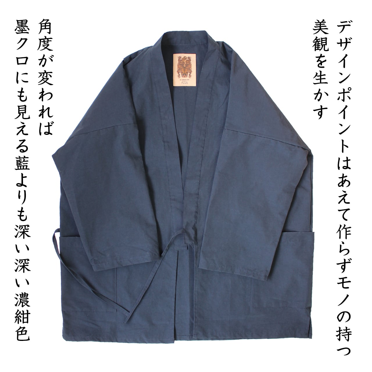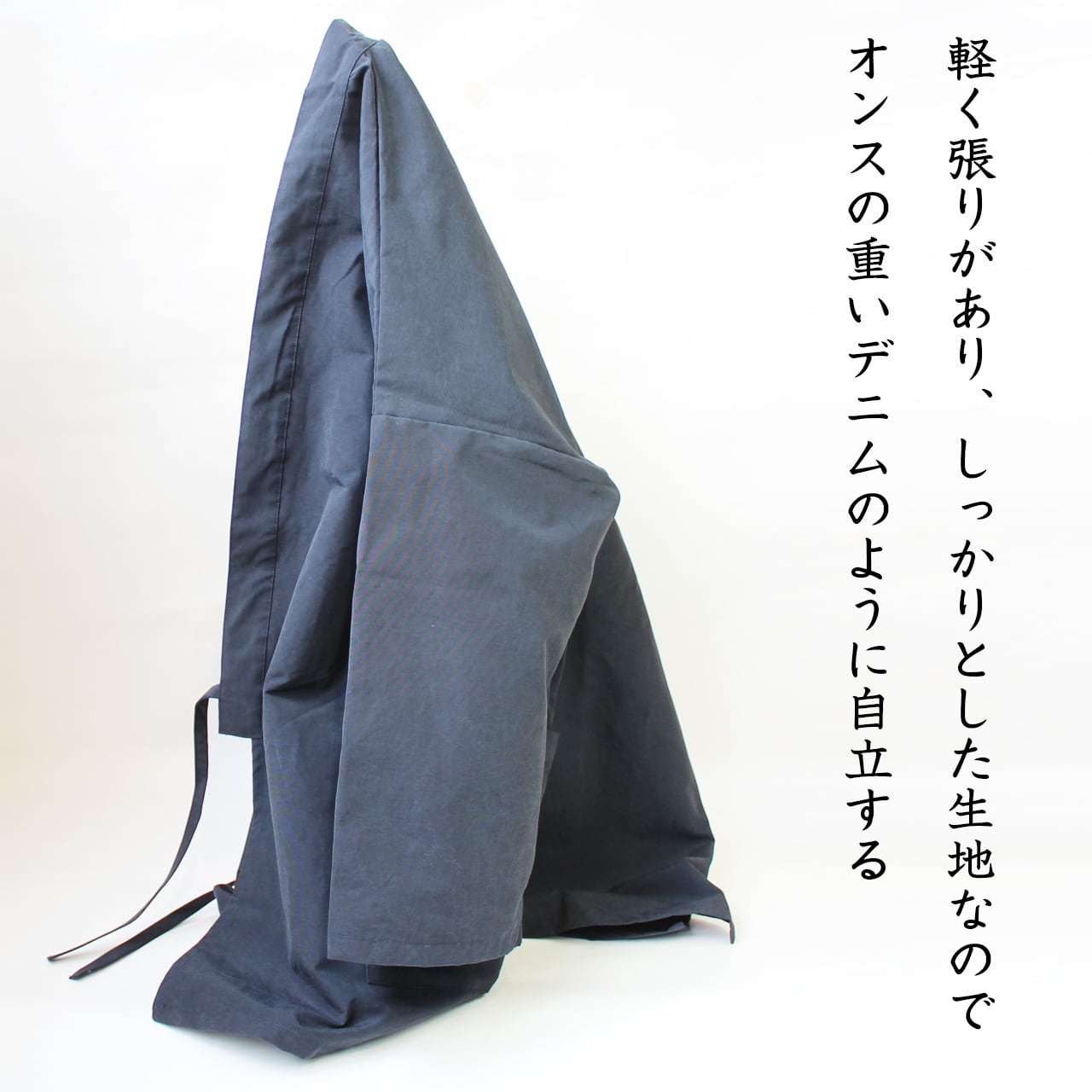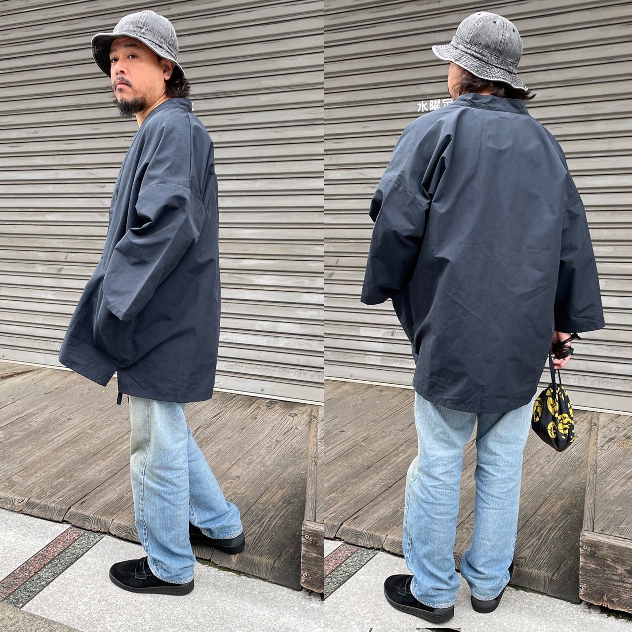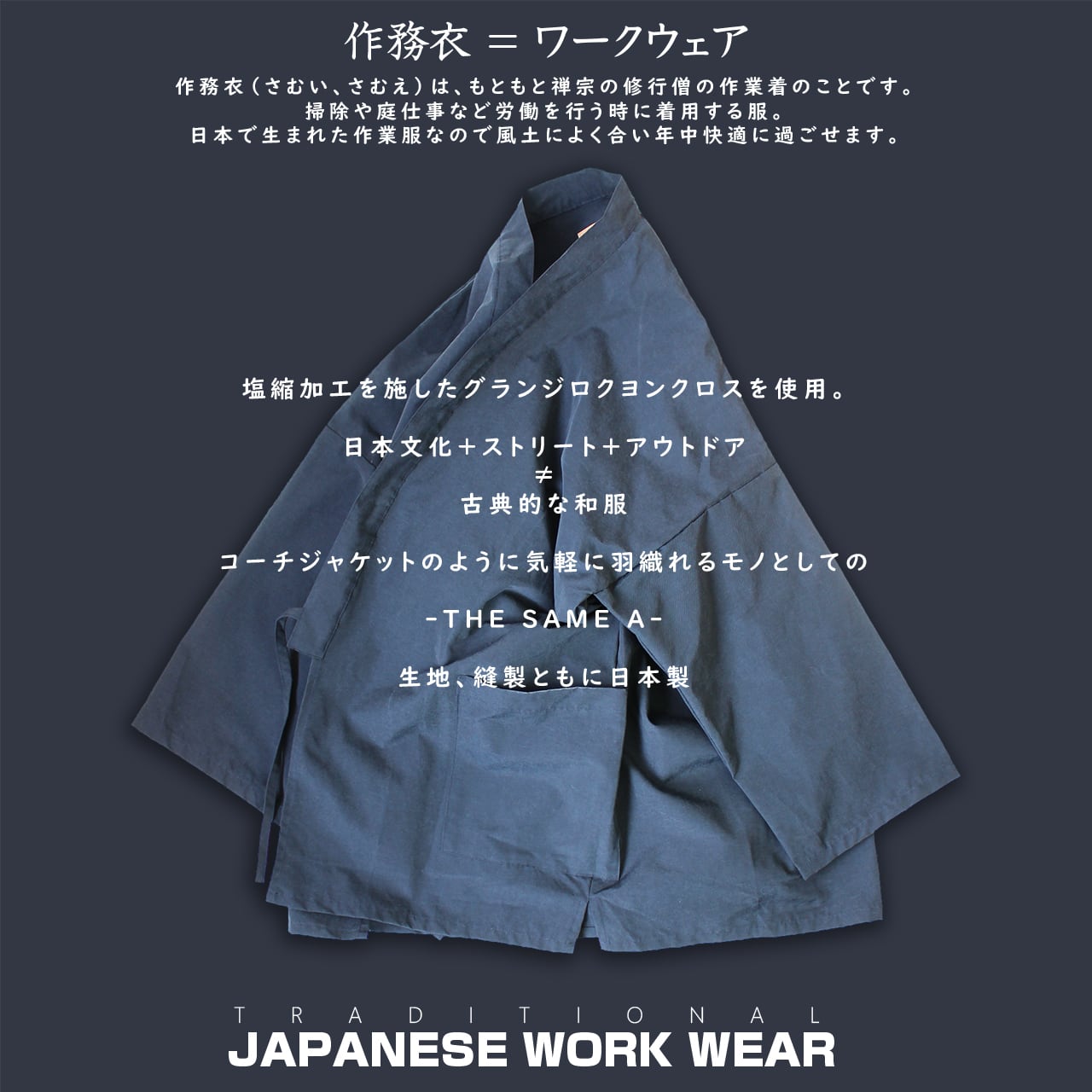 高級ブランドにも採用される、塩縮加工されたグランジ60/40クロスを使用した作務衣。コーチジャケットのように軽く羽織れるライトジャケットです。