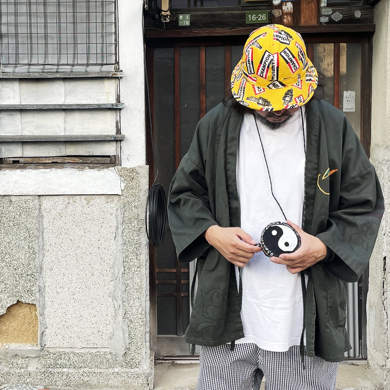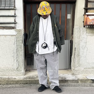 ミリタリーのランドリーバッグに使われている生地を使った、作務衣風ライトジャケット。