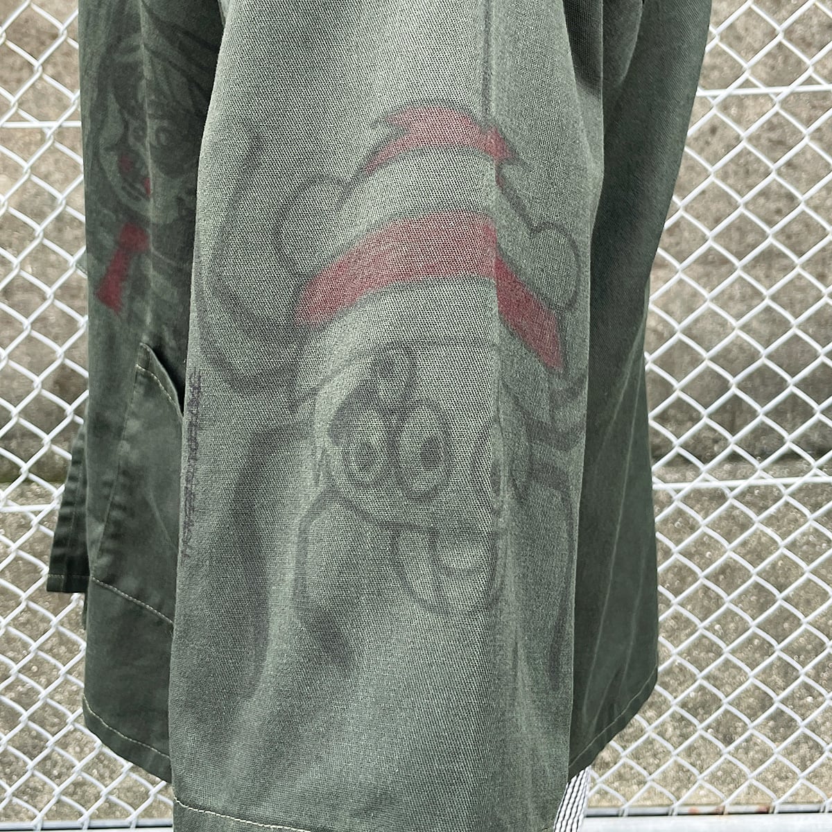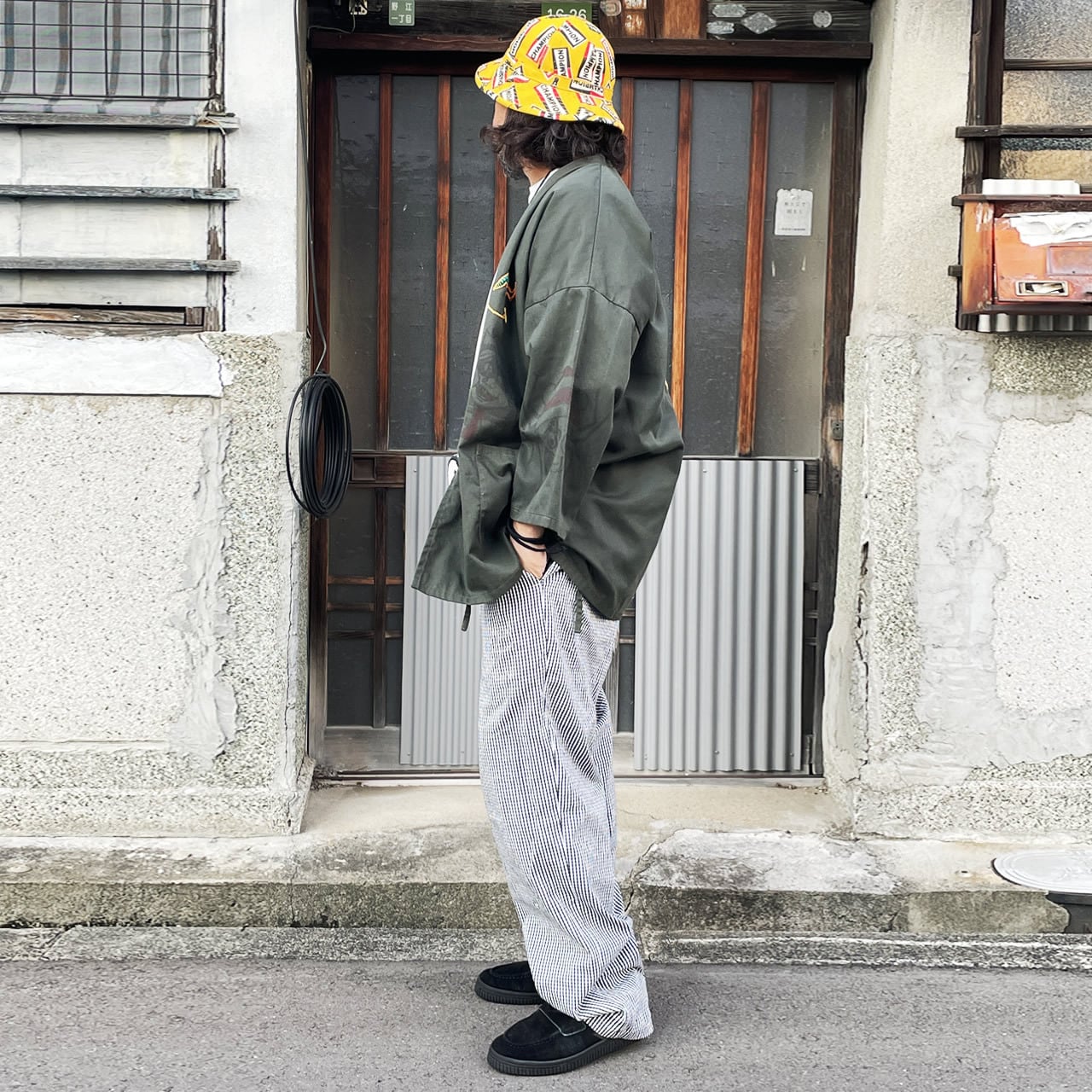 ★送料無料★ 【 THE SAME A 】 作務衣 作務衣風ジャケット ヴィンテージ風 墨染め ミリタリー 生地 OD カーキ 古着風 ストリート アメカジ メンズ ユニセックス
