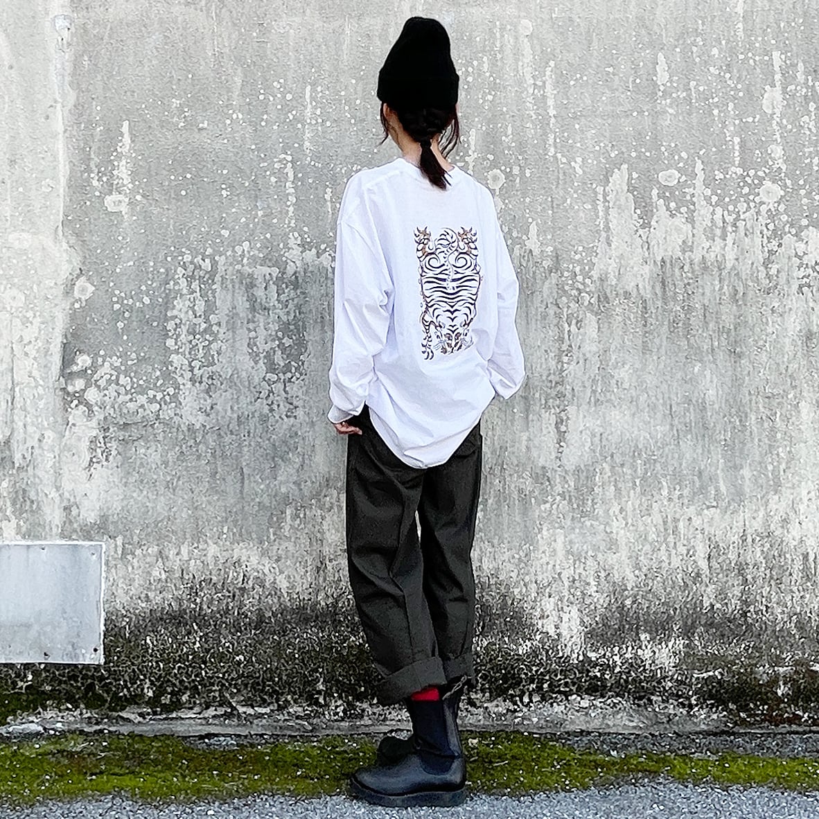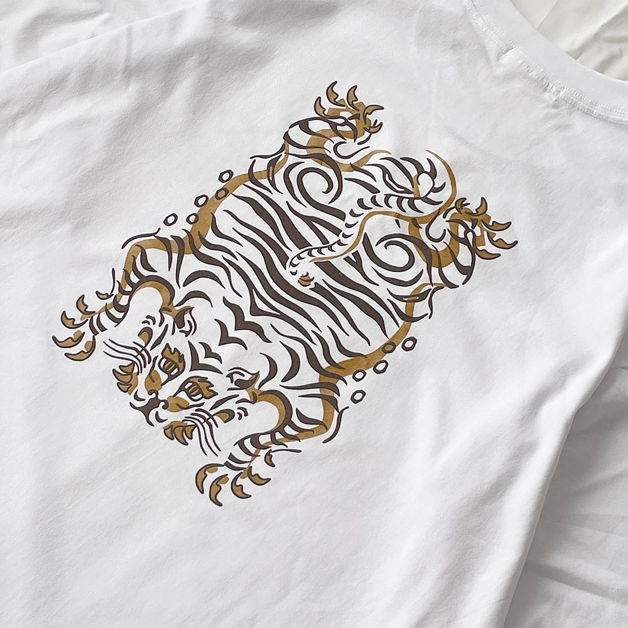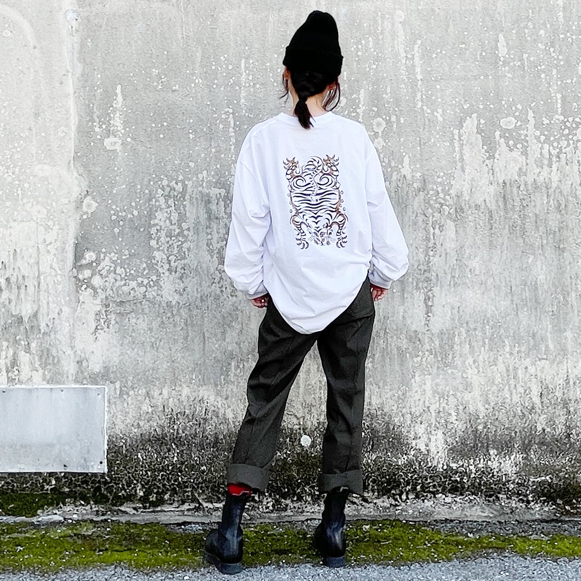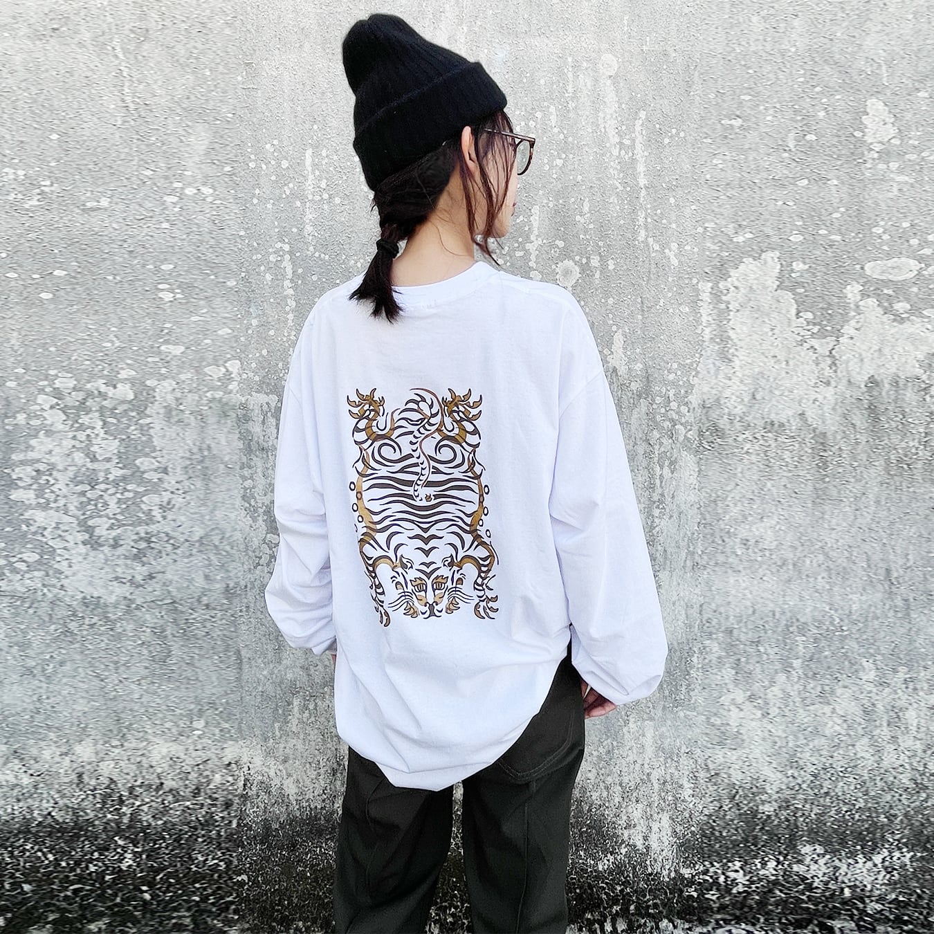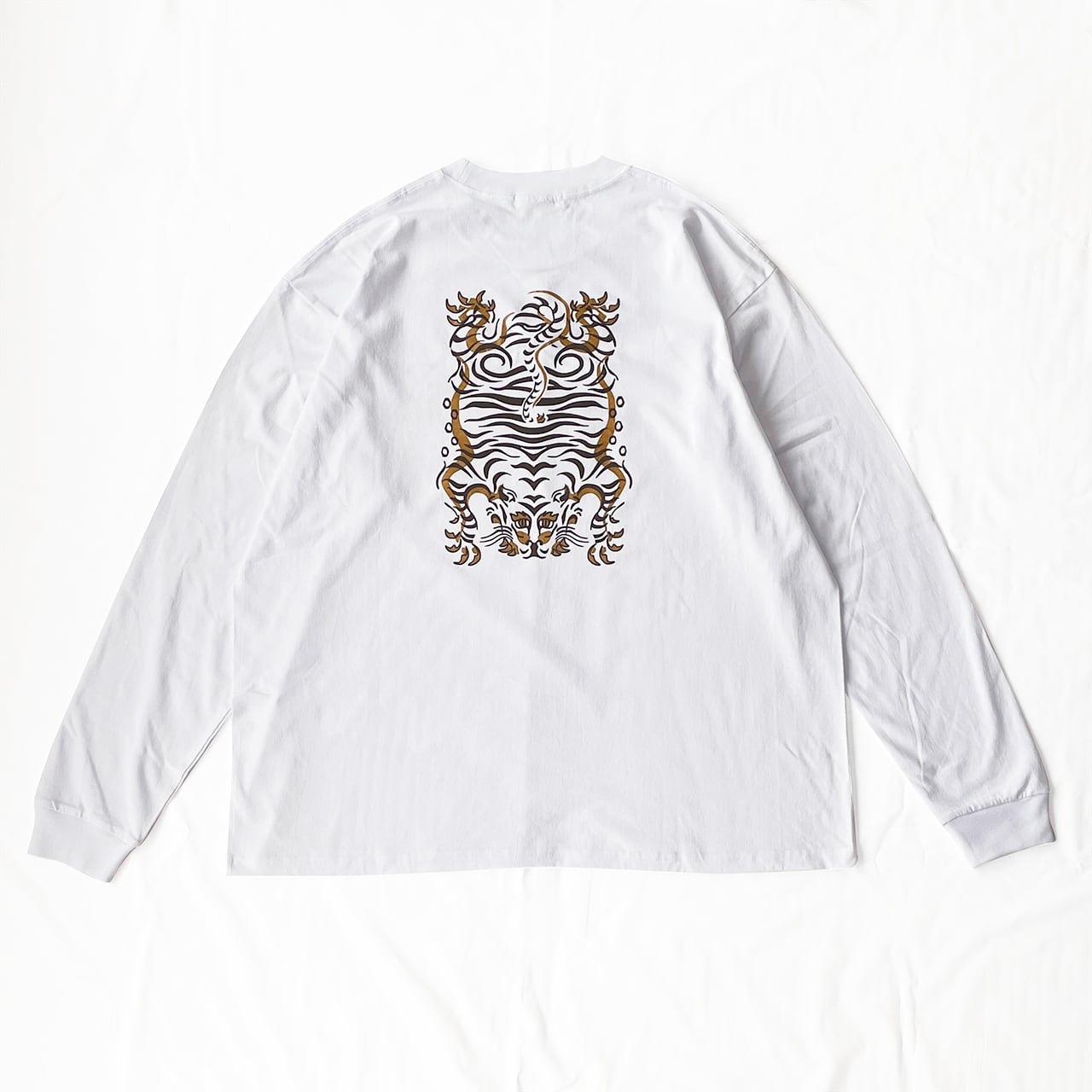 チベタン バックプリント ロングスリーブT チベタン 虎 WHITE×BROWN ホワイト ブラウン M L XL