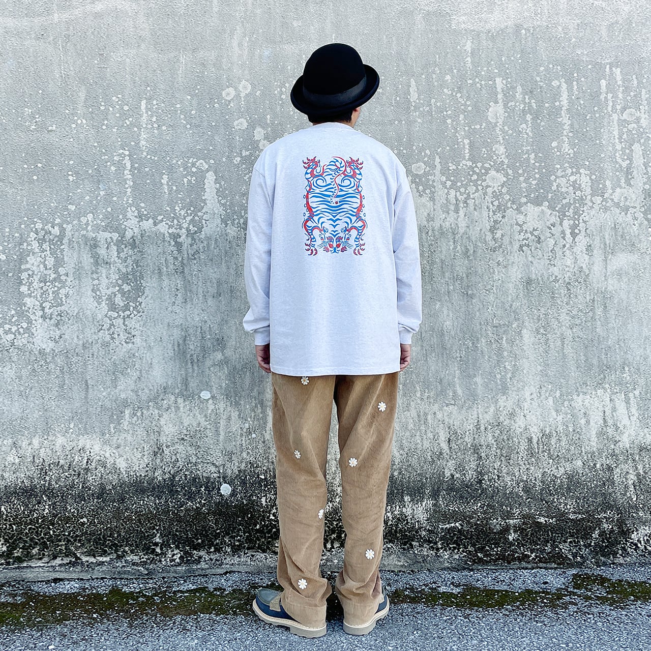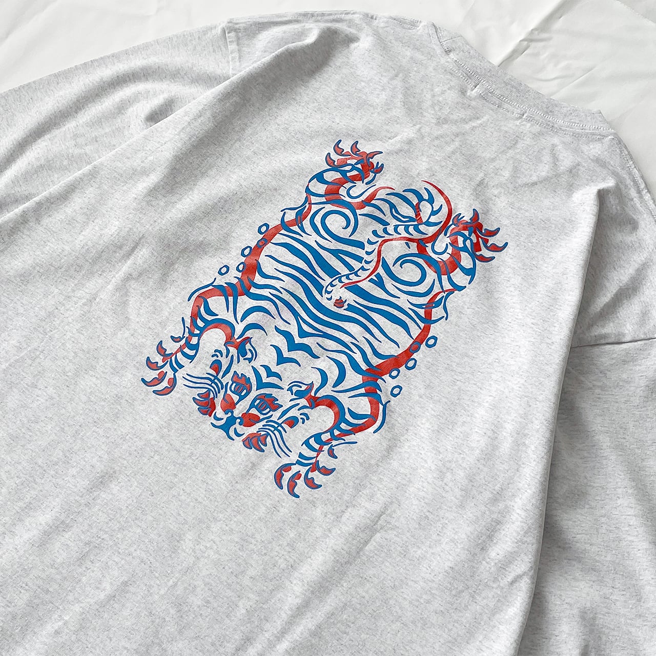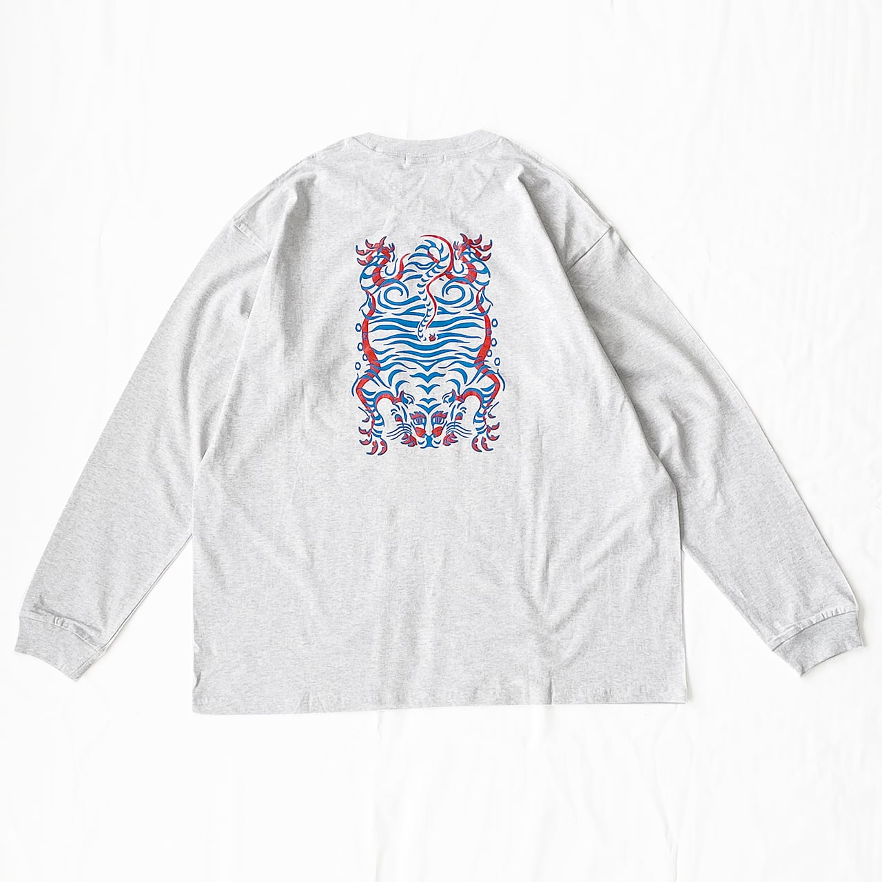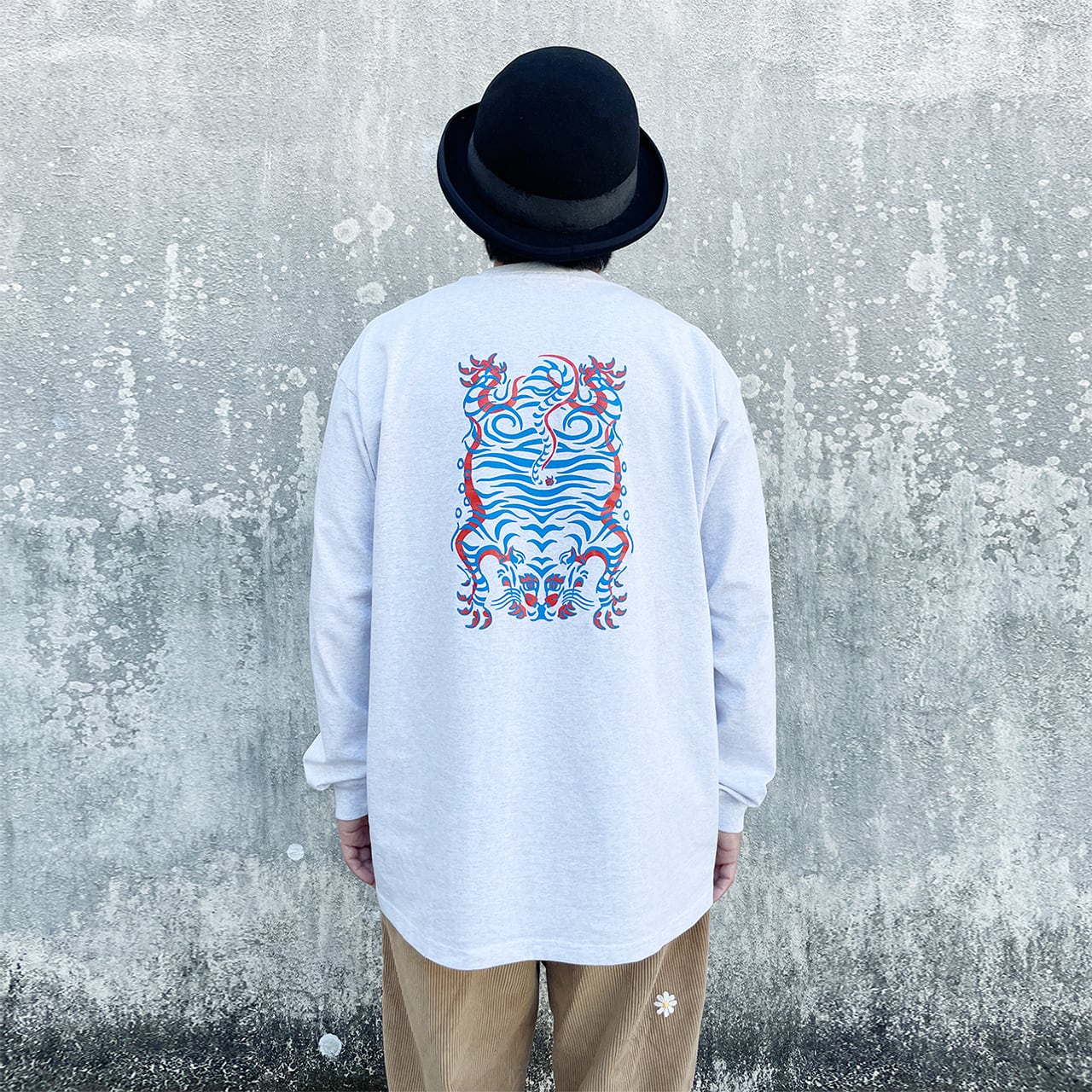 チベタン バックプリント ロングスリーブT チベタン 虎 ASH×BLUE アッシュ 杢グレー M L XL