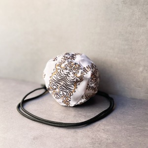 ポスト投函★送料無料★ 【S】チベタン柄 チベタンボディ ミニ巾着 カフェオレホワイト 小物入れ 小銭入れ トラ柄 タイガー ネック巾着 紐 大人 子供 お揃い