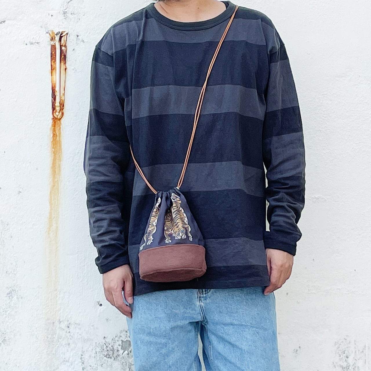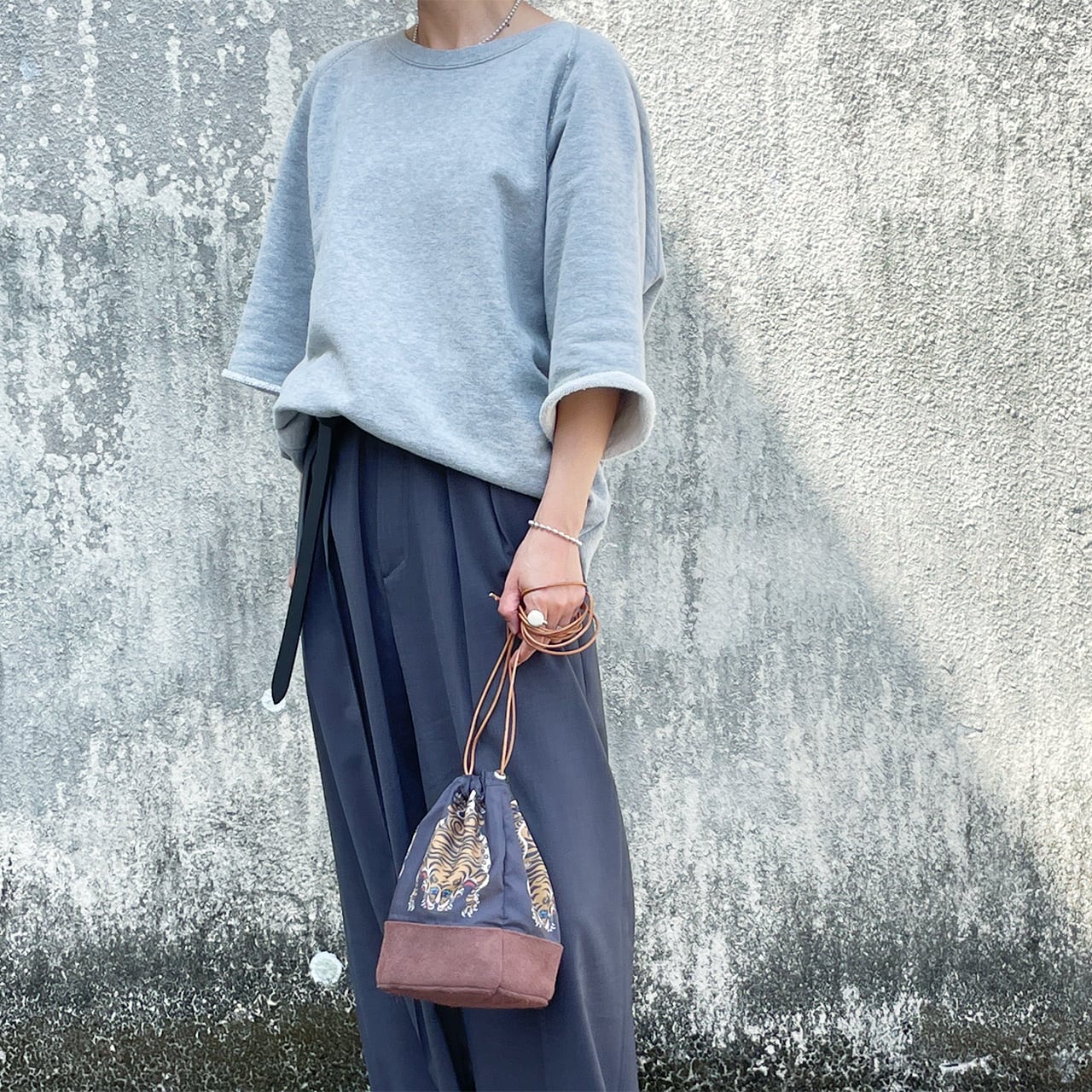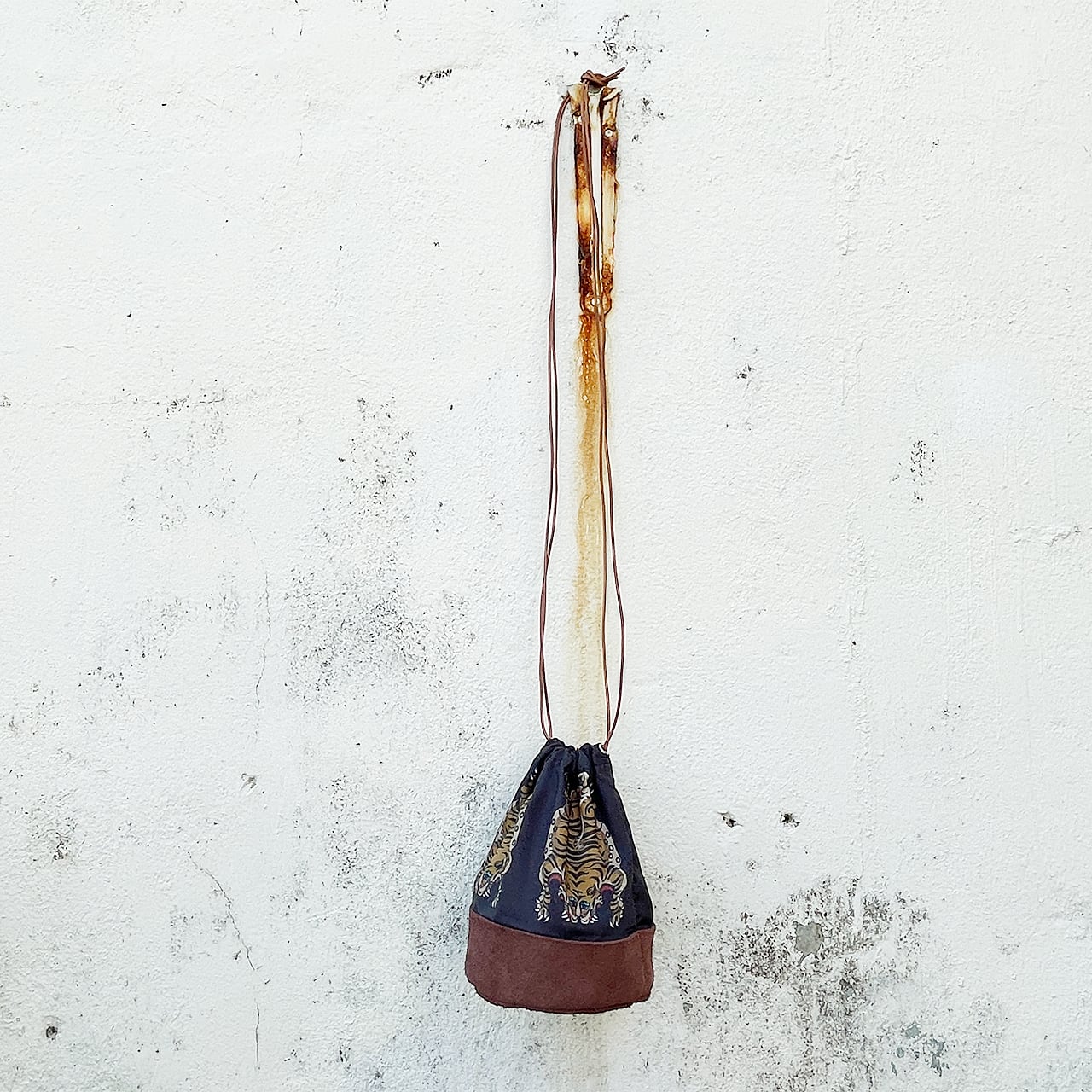 底は牛の床革、紐は牛革で、実はこだわりのあるちょっと大人な巾着。