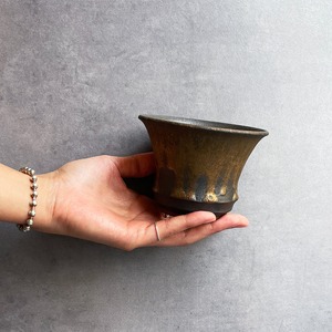沖縄県の今帰仁の窯で作られた、やちむんの植木鉢です。