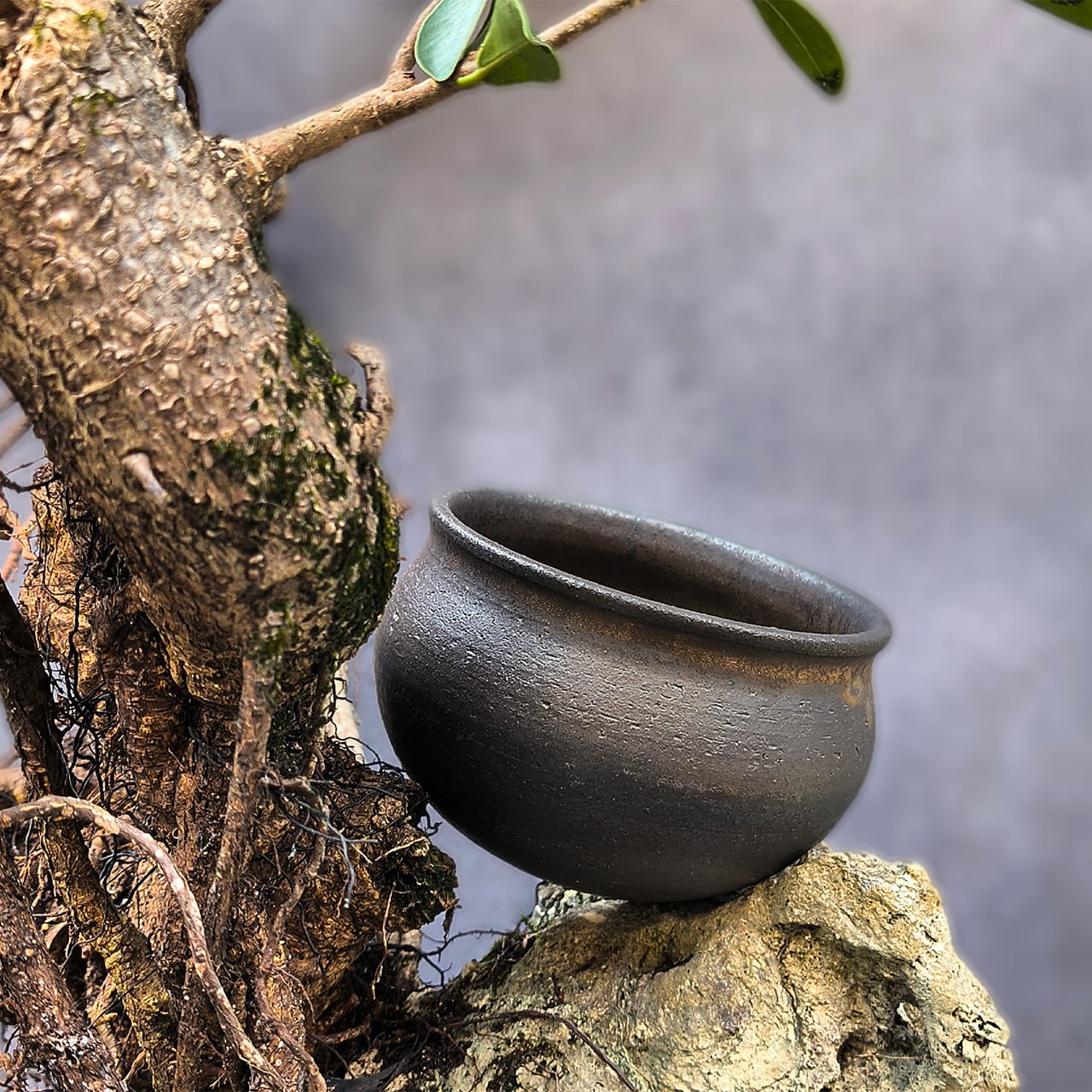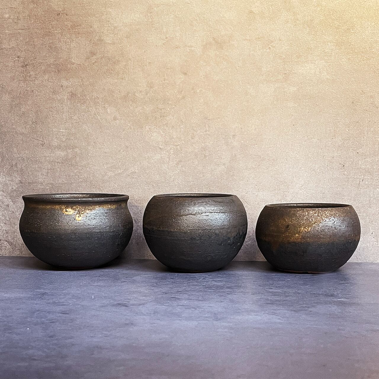 塊根植物など丸い幹の植物と相性の良い鉢。