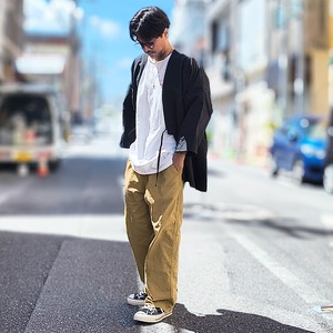 リラックス感のあるシルエットが程よく抜け感のあるこなれたコーデを完成させます。