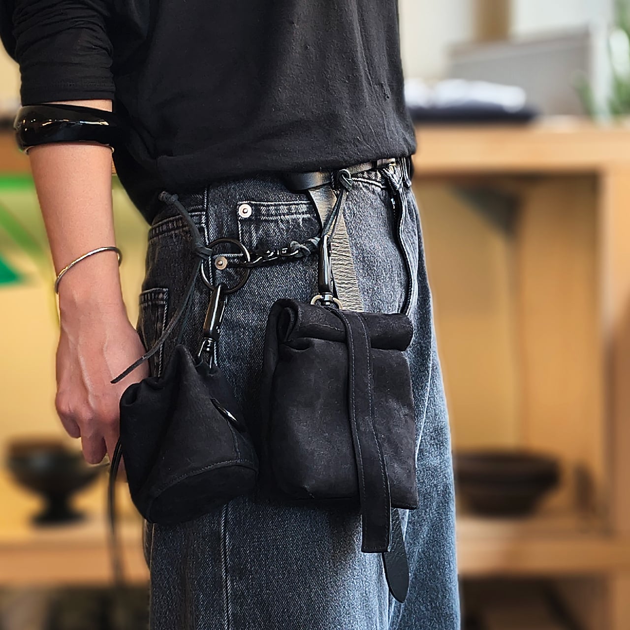 画像のようにパンツのベルトに通して、色んなものが引っかけられます。